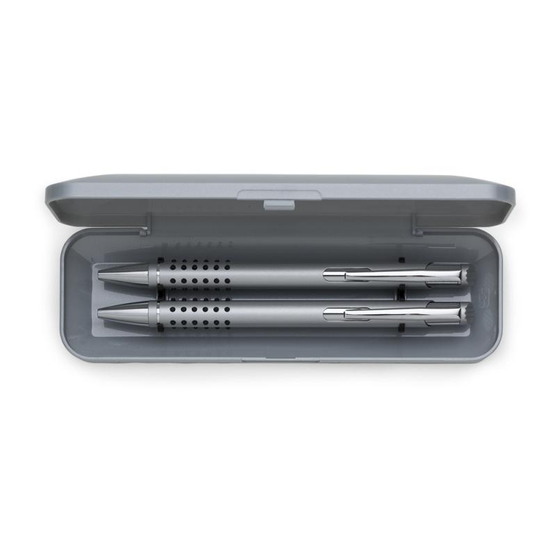 Conjunto caneta e lapiseira semi-metal e estojo plástico resistente
