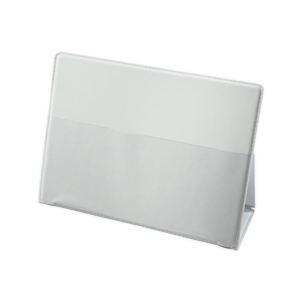 Base para calendário de pvc. Material pvc branco com "bolso" plástico para encaixar o calendário(não acompanha), basta encaixar a “rebarba” no bolso pvc para montar a base.