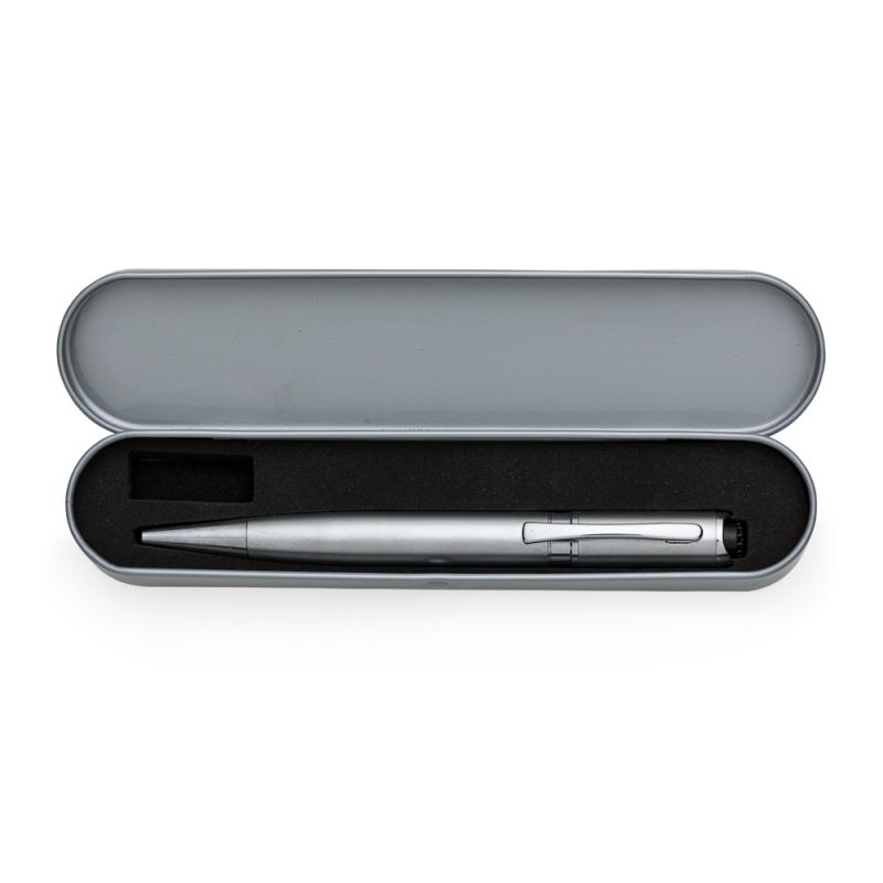 Caneta metal massageadora com estojo metal esmaltado.