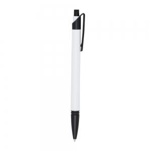 Tags Brindes - Caneta plástica corpo branco com detalhes coloridos