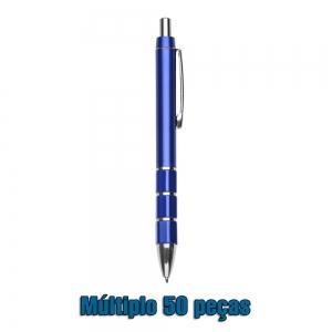 Caneta semi-metal inteira colorida com detalhes prata e com touch