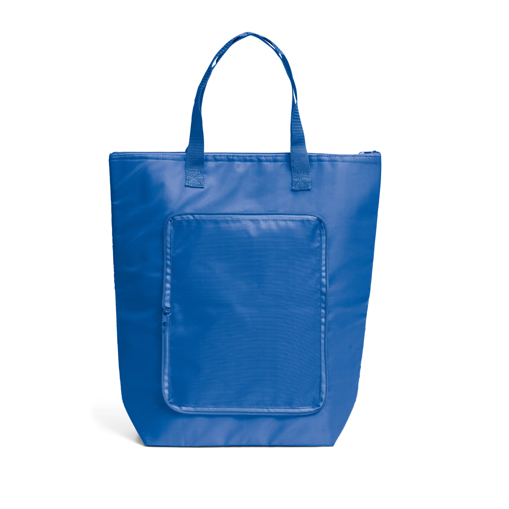 Sacola térmica dobrável. 210D. Alças em webbing de 60 cm. Capacidade até 16 L. Food grade. 400 x 440 x 130 mm