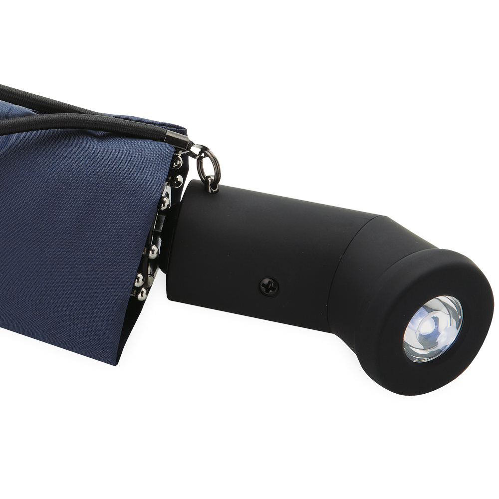 Guarda-chuva dobrável. Poliéster. Dobrável em 3 seções. Com lanterna na pega (incluso 2 pilhas CR2032). Fornecido em bolsa. ø940 mm | 310 mm | Bolsa: ø50 x 230 mm