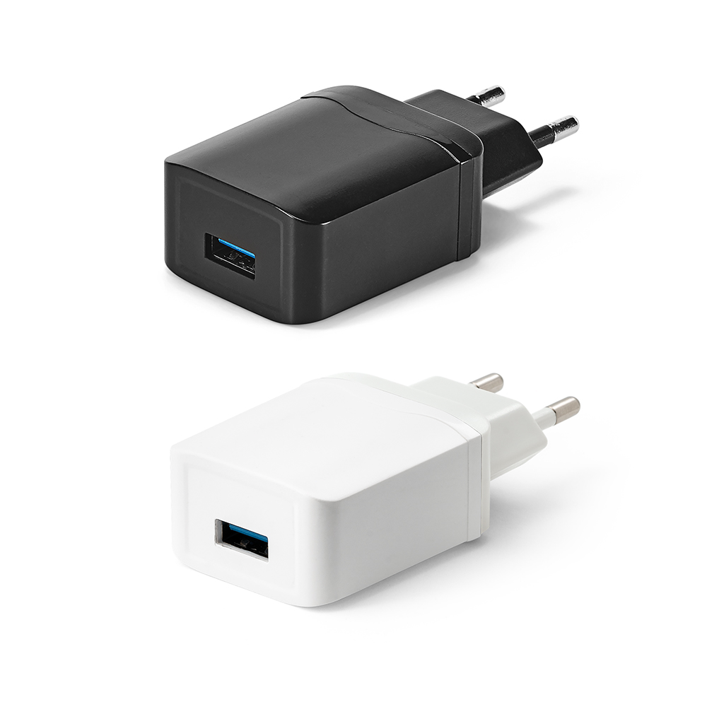 Adaptador USB. ABS. Possibilita carregamento rápido 3.0. Com saídas 5V/3A, 9V/2A e 12V/1.5A. 42 x 25 x 85 mm