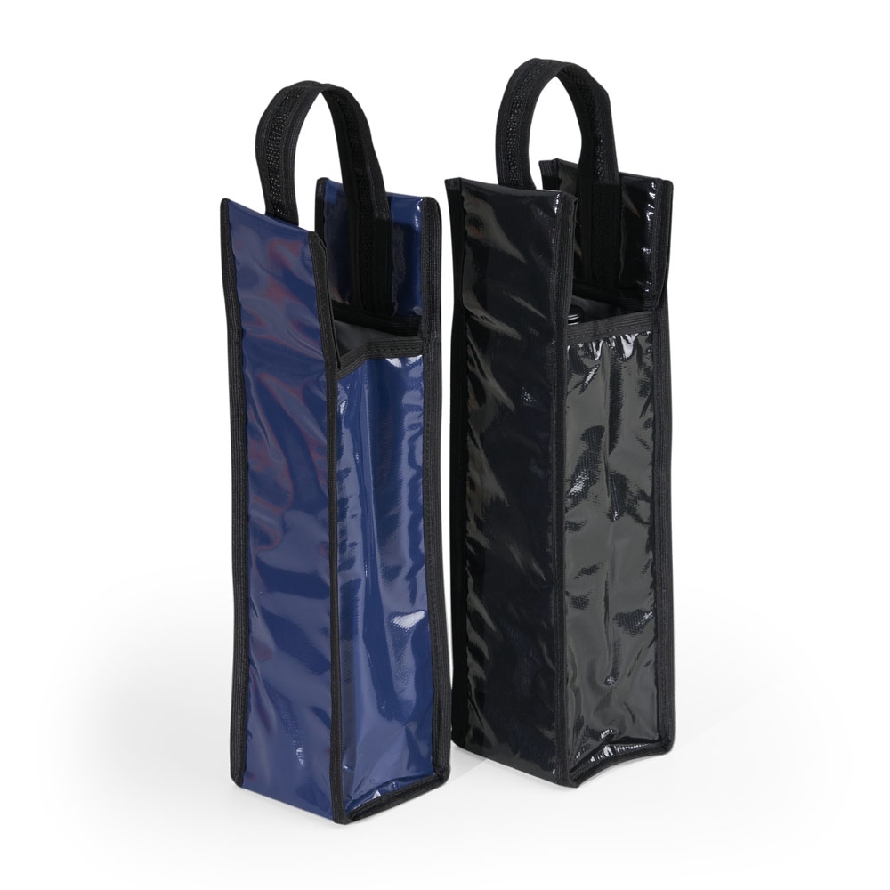 Porta vinho térmico em tecido sintético envernizado com alça de nylon.