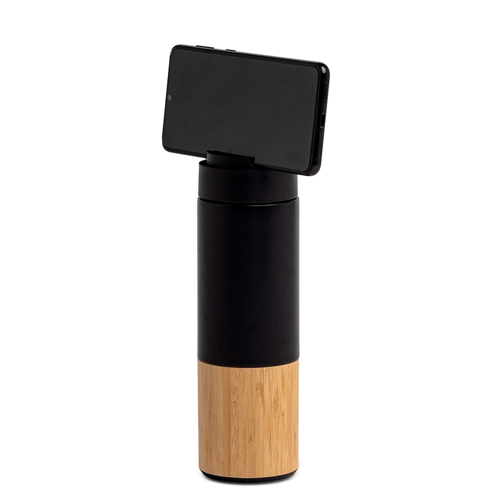 Garrafa térmica produzida em inox 304 com capacidade de 420ml, acompanha peneira para infusão de bebidas. Com detalhes em bambu e plástico, sua tampa é livre de BPA e possui uma alça para transporte que também pode ser utilizada como suporte para celular.