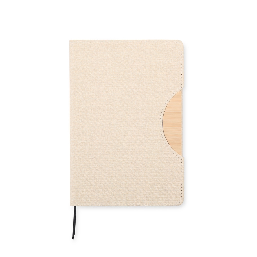 A nossa caderneta traz funcionalidade e estilo em um design leve e prático. Feita em rPET, com cerca de 96 folhas brancas pautadas, é perfeita para anotações, e conta com um suporte na capa feito de papelão, com revestimento similar ao bambu, ideal para manter o aparelho celular firme. A capa dobrável e flexível facilita o transporte, e o marcador de página em cetim agrega um toque de sofisticação.