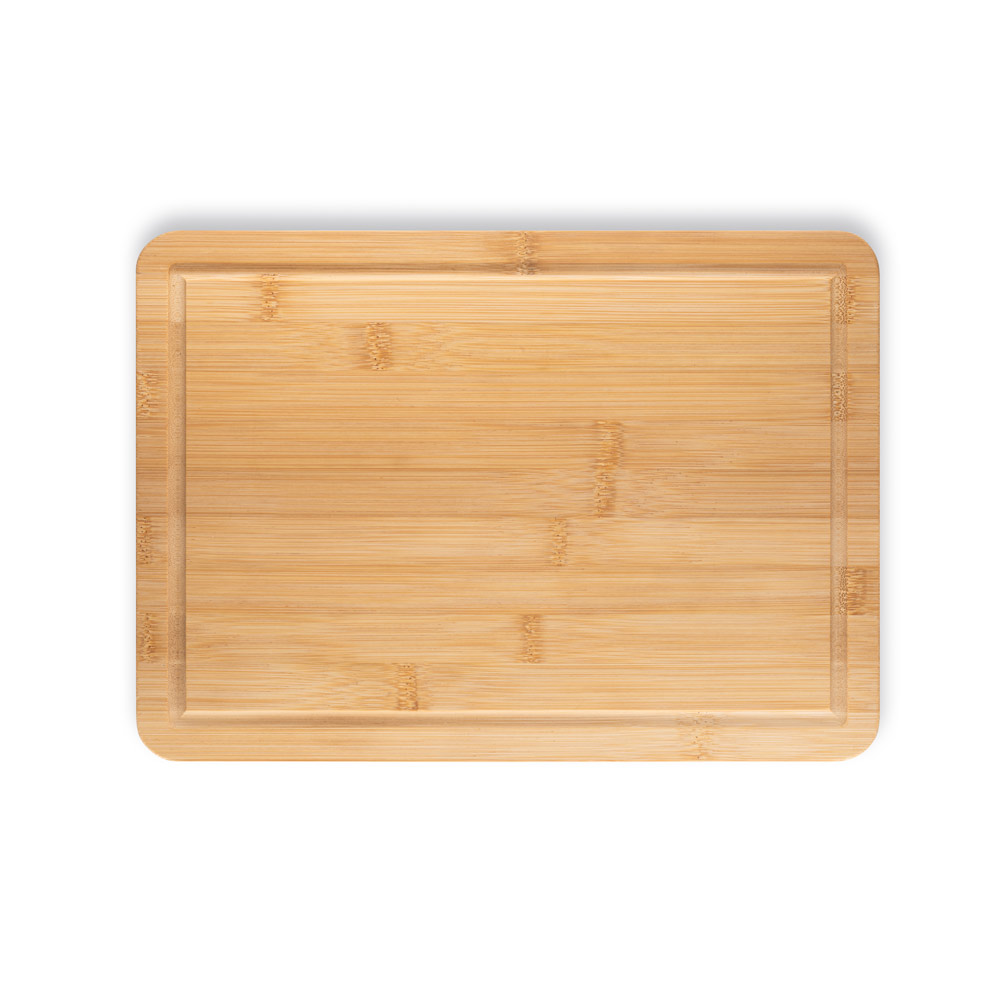 Tábua de corte em bambu. Certificação EU Food Grade. A cor e o resultado da impressão nos materiais naturais pode variar entre produtos.