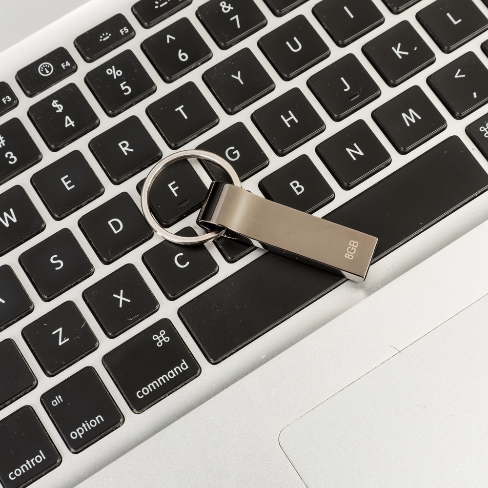Pen drive metálico de 4GB/8GB/16GB com pintura grafite espelhado e chaveiro.