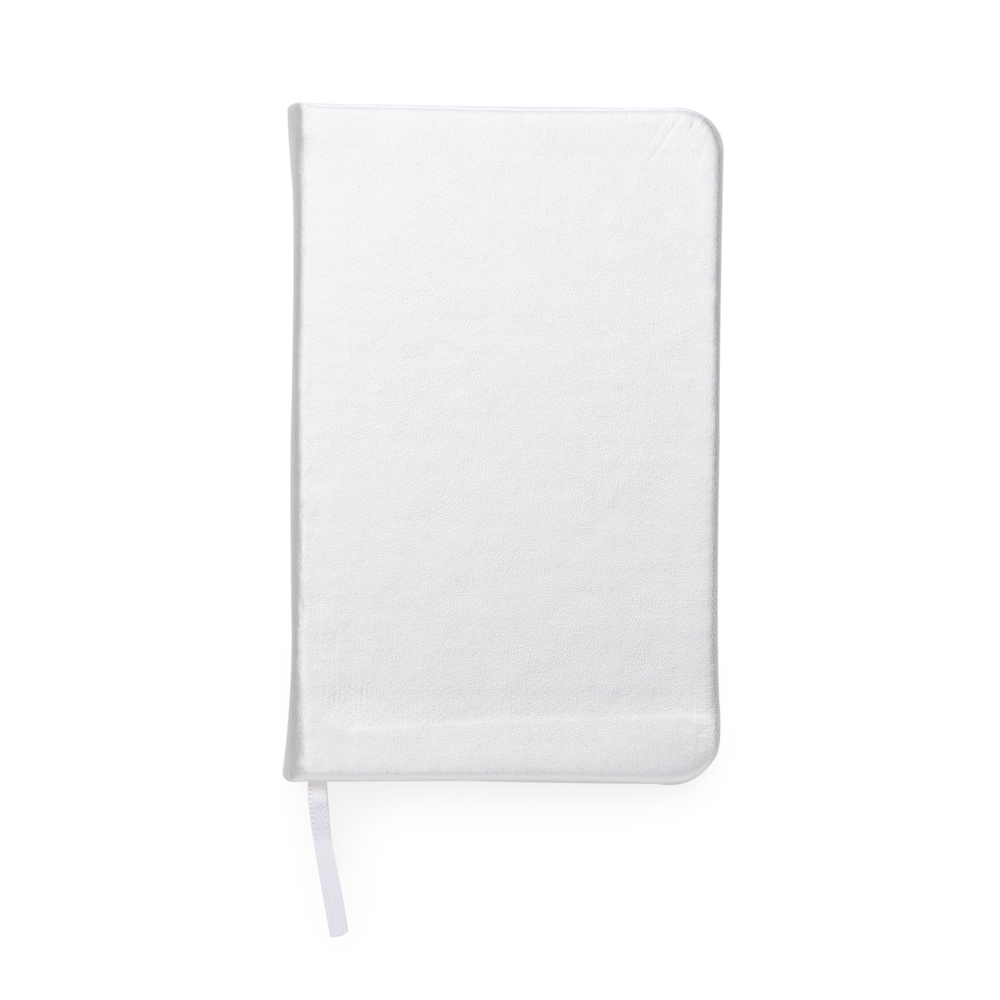 Caderneta de couro sintético com elástico para lacre e marcador de página em cetim.